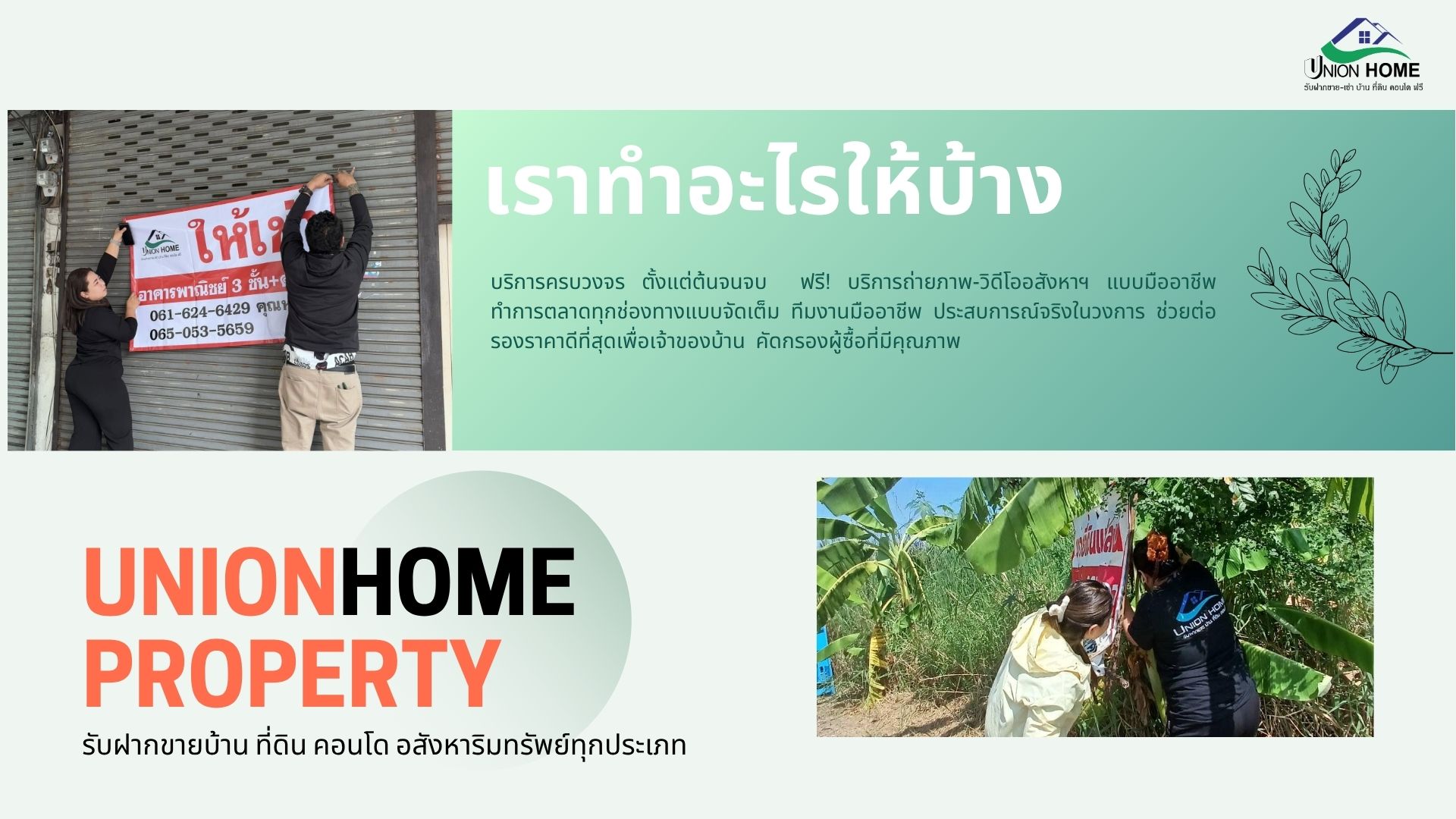 Union Home Real Estate agent รับฝากขาย-เช่า บ้าน ที่ดิน คอนโดทุกชนิด ผลของงาน คือ มาจากการลงมือทำ ยังคงเชื่อคำนี้เสมอ ทีมงานพร้อมบริการคุณอย่างมืออาชีพ เราใส่ใจดูแลและทำการตลาดทุกรูปแบบและ การนำเสนอข้อมูลอสังหาริมทรัพย์ของท่าน เพื่อให้ผู้ขายสามารถขายทรัพย์ได้ไวและผู้ซื้อได้รับความสะดวก "UNION HOME บริการด้วยใจ คนซื้อได้สินค้า คนขายได้ราคา "